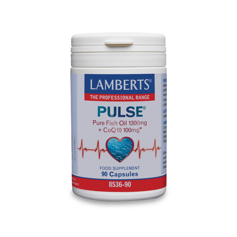 Pulse® is a superior two a day formula providing Pure Fish Oil 1300mg and a full 100mg of Co-Enzyme Q10 (CoQ10). These capsules contain a concentrated fish oil which provides a full 1040mg of omega 3s per two capsules. The fish oil undergoes a sophisticated purification process that ensures it is largely odour free, with levels of contaminants well below the strict EU maximum limits. The oil is then protected from oxidation while it is in the capsules by the inclusion of natural vitamin E (and CoQ10).